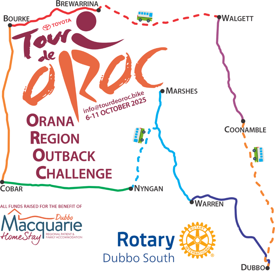 The Toyota Tour de OROC, an initiative of the Rotary Club of Dubbo South, is a unique biennial cycling event running from 6 to 11 October 2025. Covering more than 800 kilometres across the Orana Region, it is one of the longest and most rewarding charity rides on the global calendar.