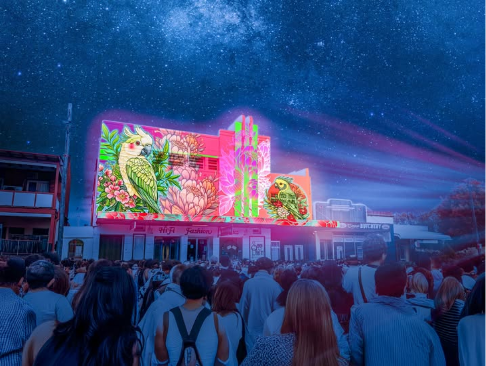 As the sun sets, the night will light up with a spectacular projection light show, turning buildings and spaces into luminous canvases beneath the starry Warrumbungle skies.