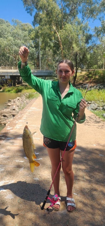 Fallon McClelland Having a great catch day at the Nyngan Carp Muster - Image Nyngan RSL Fishing Club.