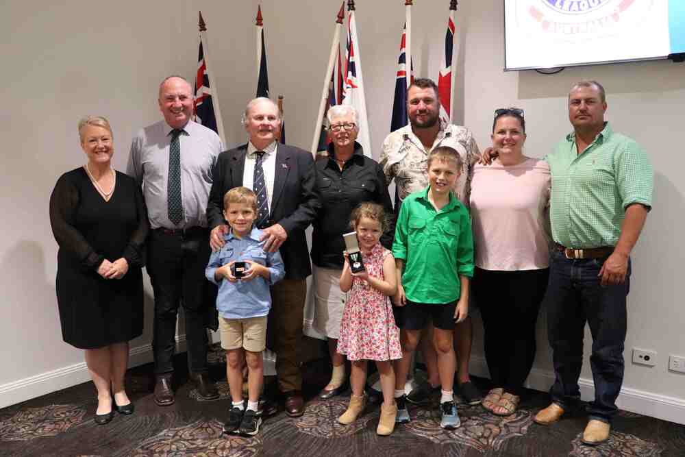 Narrabri RSL Sub-Branch president Nicole Gallagher and Shadow Minister for Veterans’ Affairs Barnaby Joyce pictured with Brian Bowman and his family.