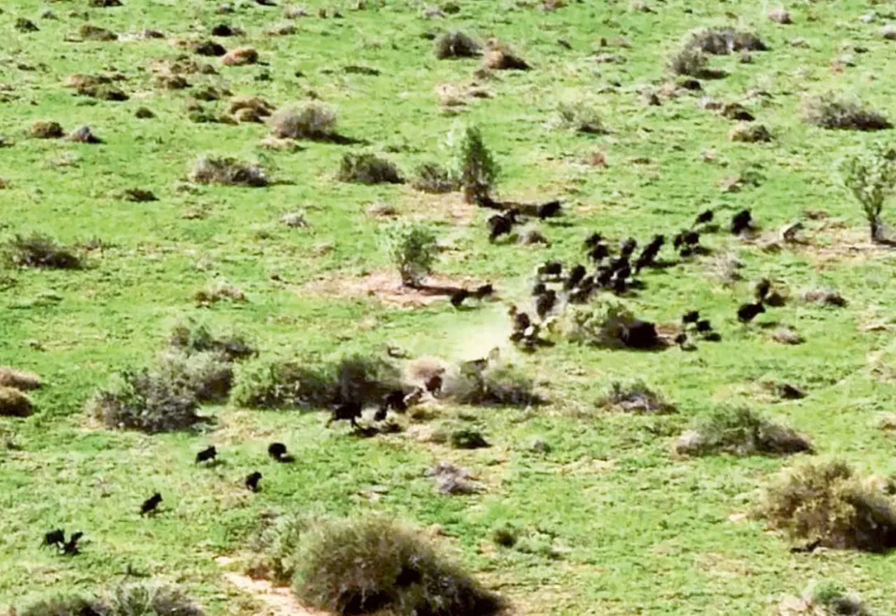A mob of pigs on the move near Conimbia during an aerial shoot around mid-2025, when the contractor involved said they shot a daily record. [IMAGE: The Coonamble Times]