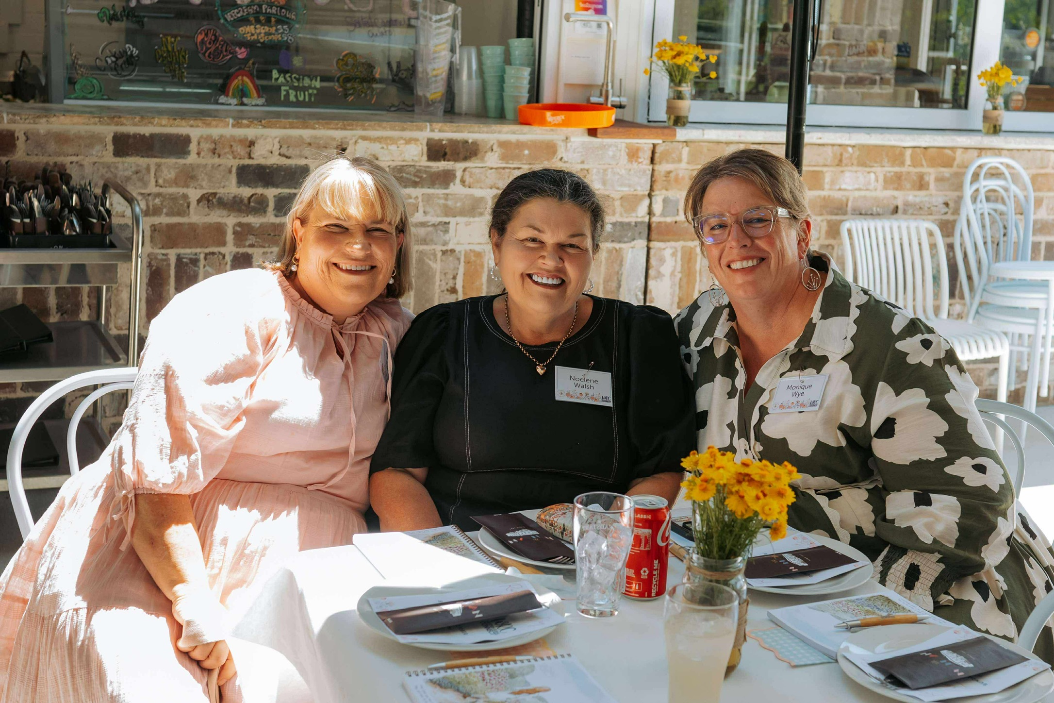 Narelle Fisk, Noelene Walsh and Monique catch up for the Rural Women's Day lunch [IMAGE: RowieMarieHawleyPhotography]