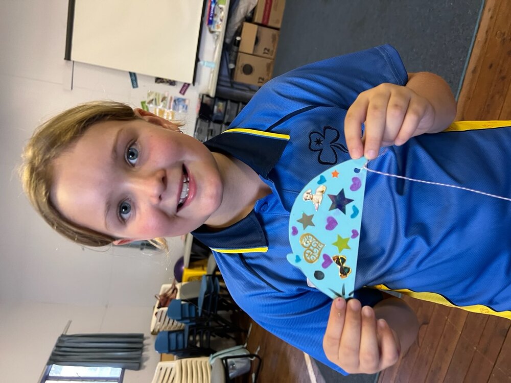 A girl guide holding her freshly made good turn mouse. Photo: supplied.