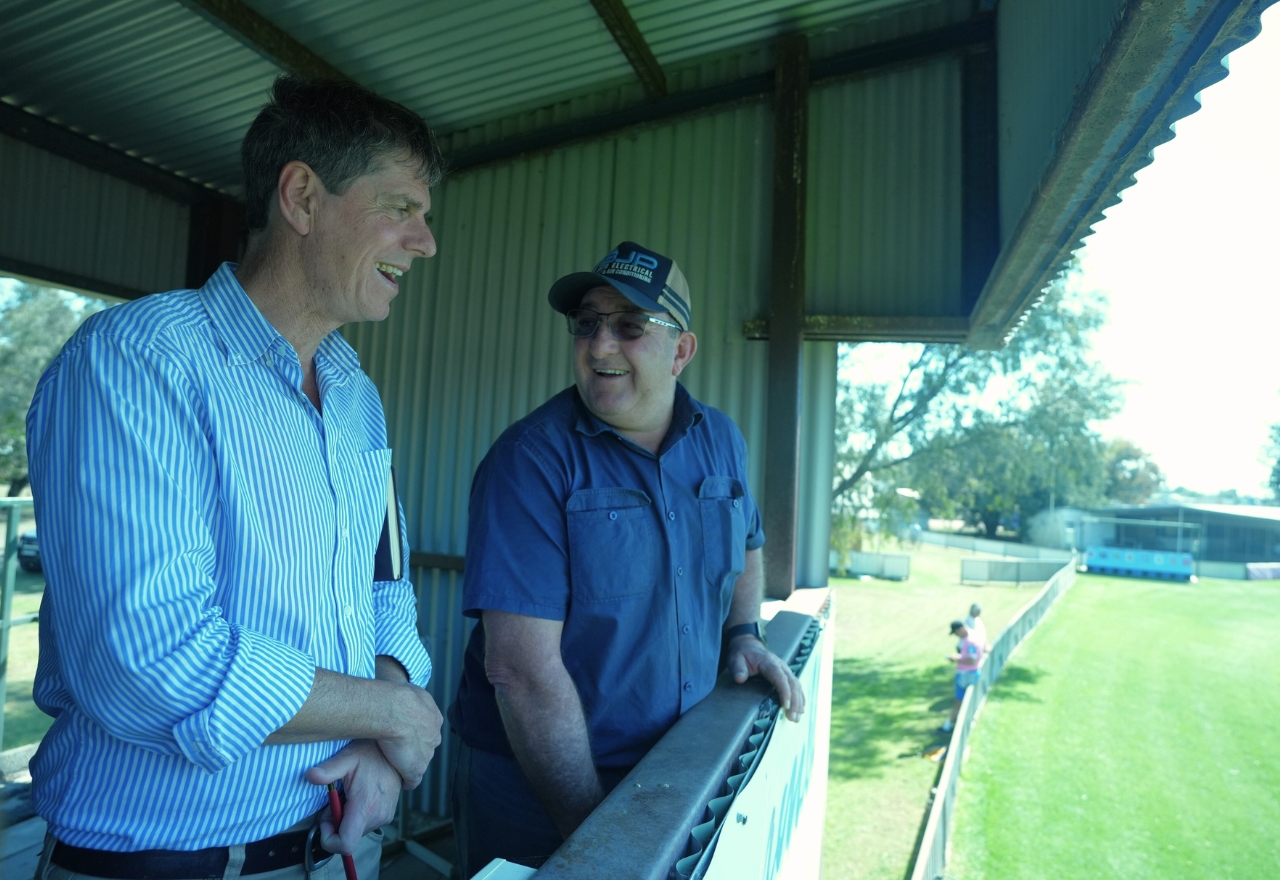 Coonamble Greyhound Racing Club president Graham Pickering (right) provides Nationals MP Dave Layzell a tour of the local club in September 2025. [IMAGE: River McCrossen]