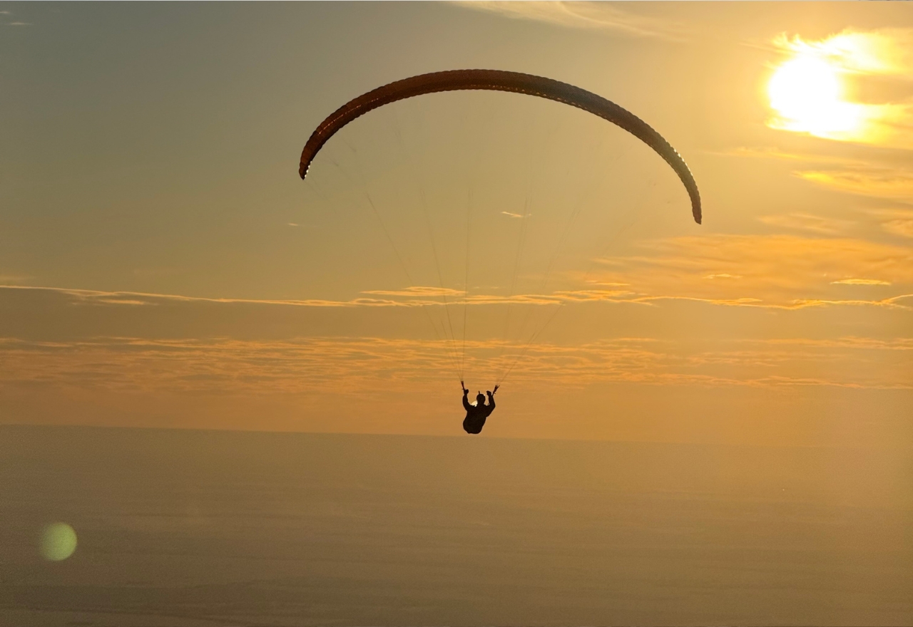 Unlike hang gilders, which use a rigid frame, paragliders use a foldable wing that, in Felix's case, can fit into a backpack.