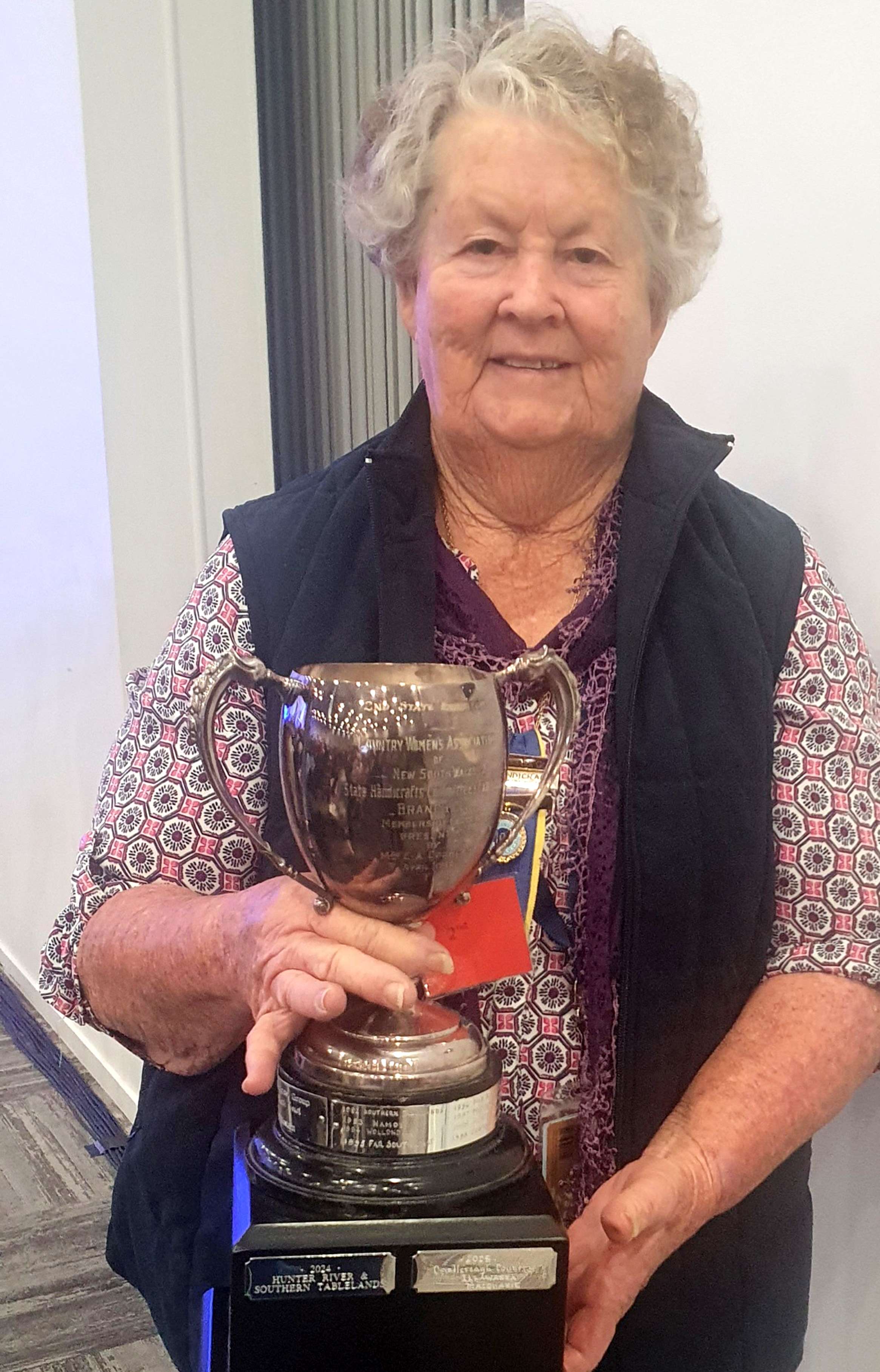 Barbara Gow (Mudgee) with the winning Castlereagh Country Group handicraft trophy. [IMAGE SUPPLIED]