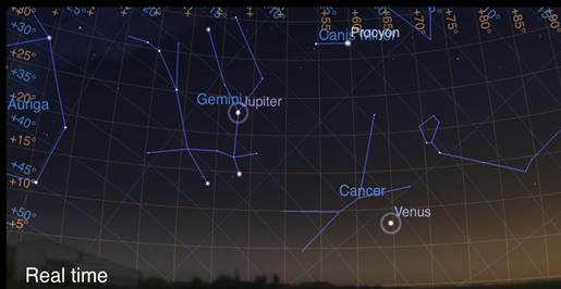 Venus and Jupiter in morning sky before Sunrise. From Stellarium.