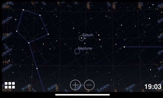 Saturn is observable in the evening sky within the constellation Pisces, moving to Aquarius by the month's end.