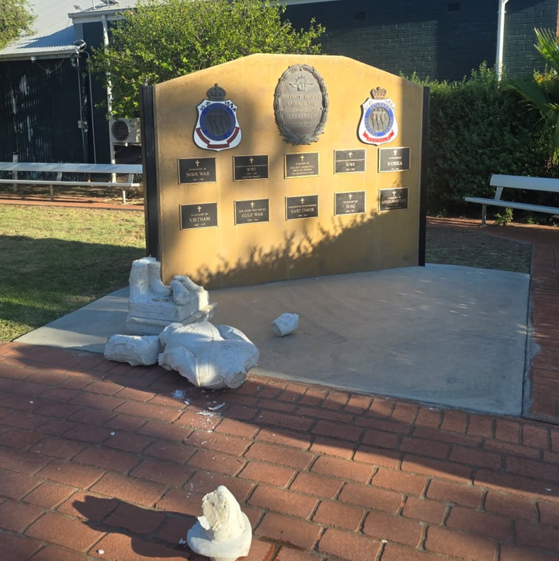 Walgett Shire Council mayor Jasen Ramien says he condemns, in the strongest possible terms, the deliberate vandalism and destruction of the “Man on the Monument”, the century old marble soldier.