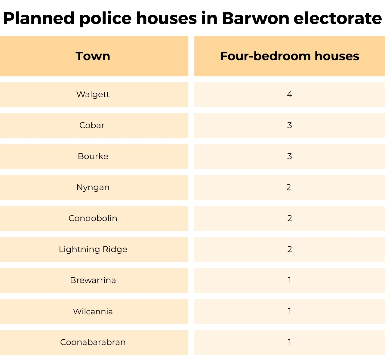 Thirty-two police homes are expected to be completed across Barwon before 2027 under the Key Worker Housing Program, according to the NSW government.