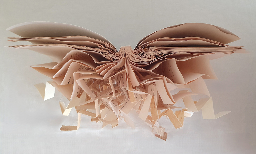Book Blossom, one of Tina’s thought-provoking creative book-themed works on display in her exhibition.
