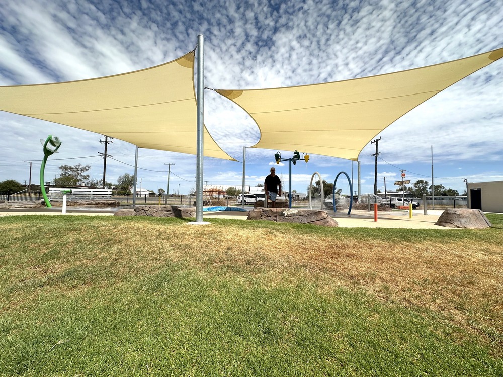 Brewarrina Mayor Tom Stanton passes by the new splash park daily. Photo: supplied. After a wet start to the bore bath season in Goodooga, residents and visitors can now fully enjoy the newly opened Splash Park.