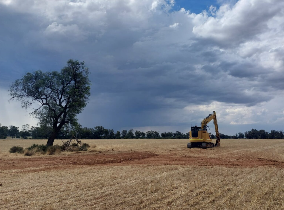 An excavator ready to dig a test pit as part of geotechnical observations along the Narrabri to Narromine Inland Rail route (Image: Inland Rail).