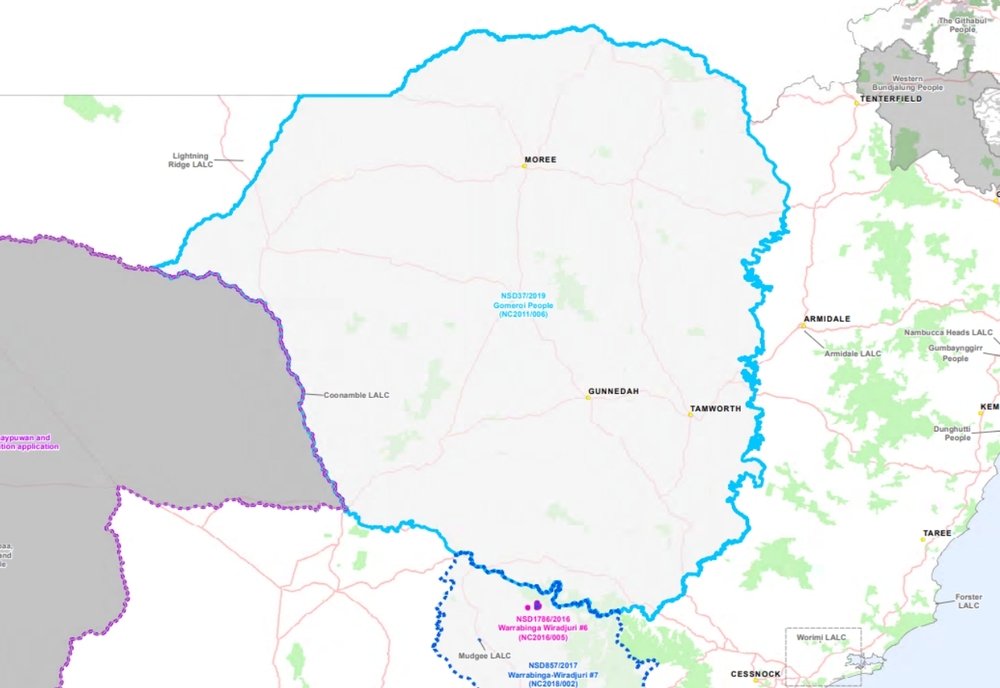 The area under native title claim by the Gomeroi people. See full map here.
