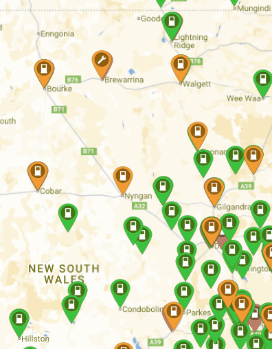 Charging stations are also located in Cobar, Bourke, Nyngan, Condobolin and Coonabarabran while smaller centres like Tottenham, Albert, Trangie, Euabalong, Gulgargamboe and Nymagee have stations.