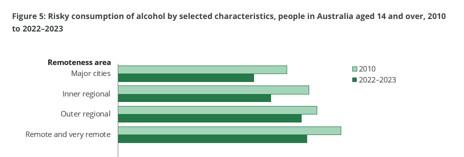 Saying no to alcohol can be tricky in the bush, the latest statistics from the Australian Institute of Health and Welfare (AIHW) show, but experts say these attitudes are slowly changing.