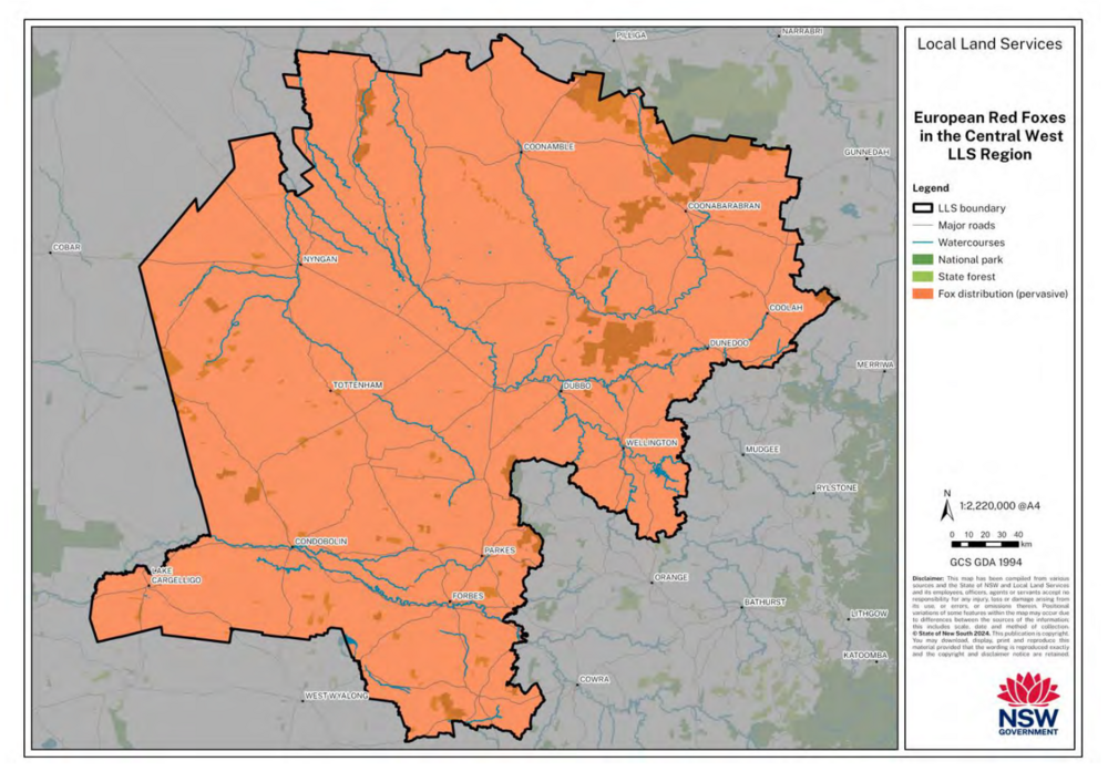 European Red Foxes are found across the Central West Region. Data from October 2024. Image: Local Land Services
