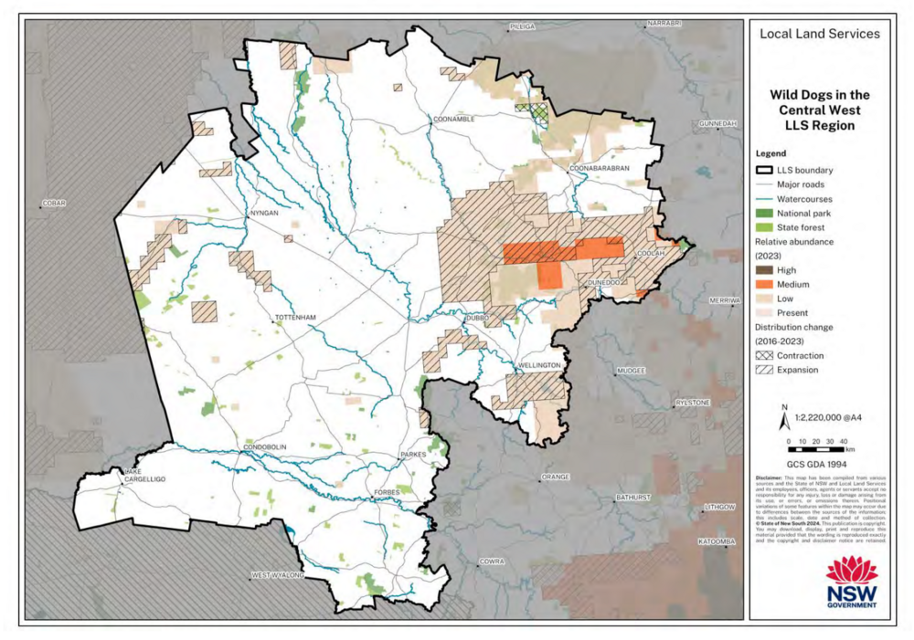 From 2016, Wild Dog numbers have expanded in areas across the Central West Region. Data from October 2024. Image: Local Land Services