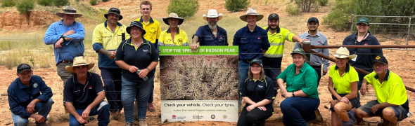 Members of the Central West Hudson Pear Task Force. Image: NSW Crown Lands Members of the Central West Hudson Pear Task Force have teamed up for the third consecutive year in an effort to control the spread of the weed at Quanda Reserve near Coonamble.