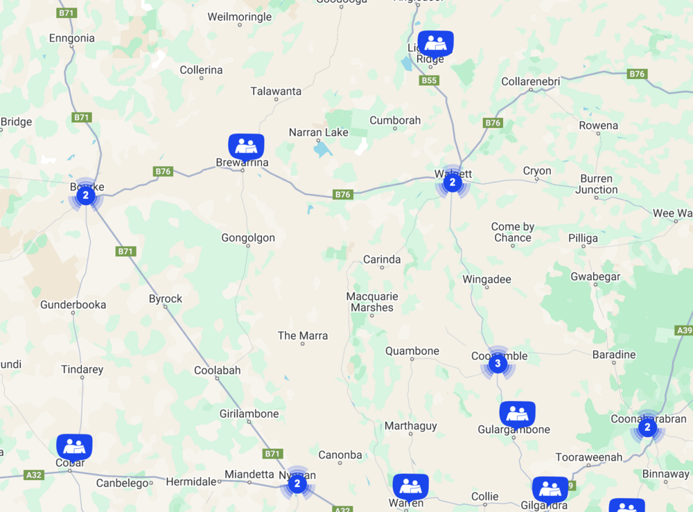 Map of where financial counselling services are available in the Western Plains region. Photo: National Debt Helpline