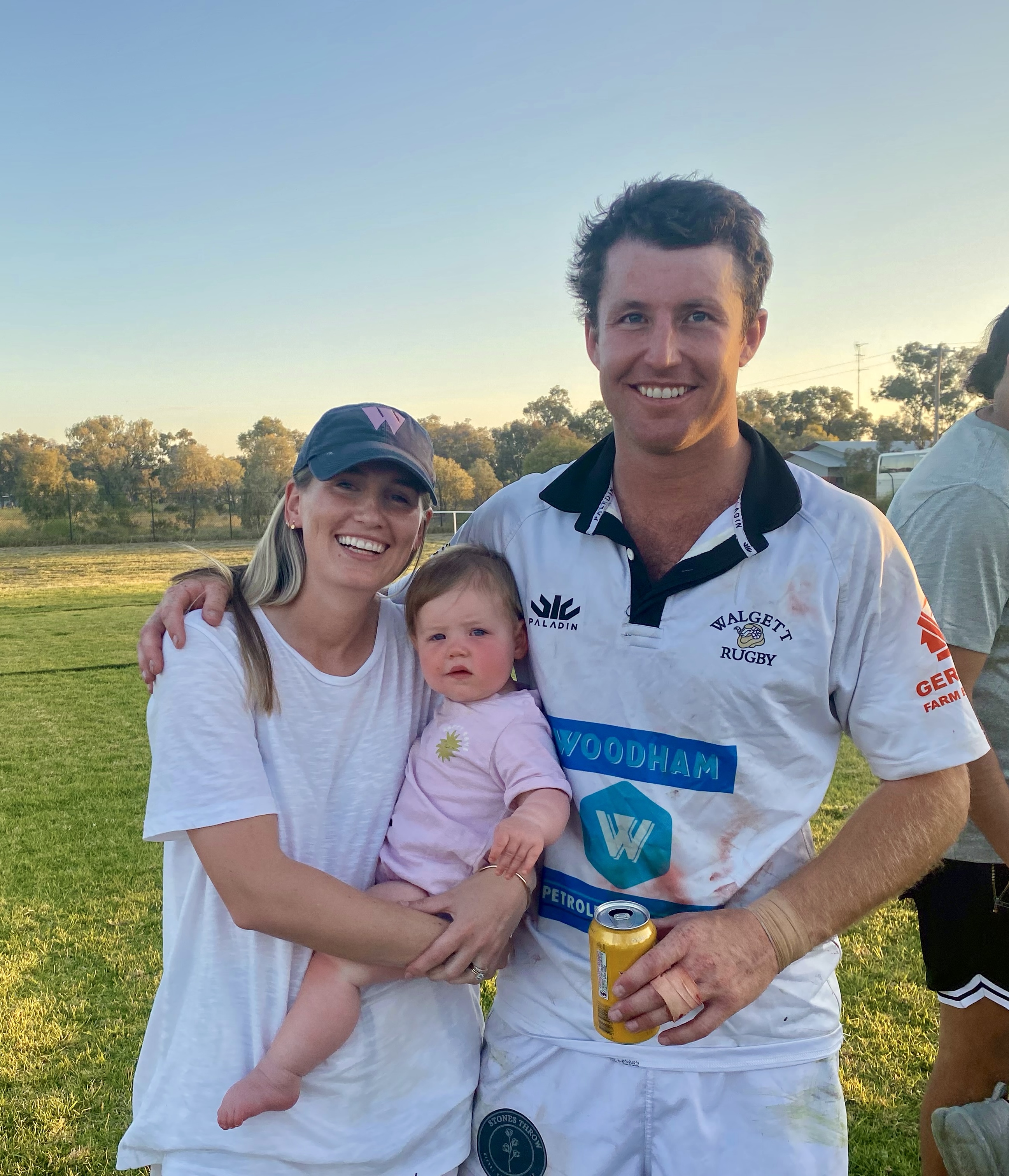 Walgett Rams Captain Charlie Friend pictured with his wife Carly and daughter Billie - Image courtesy Walgett Rams