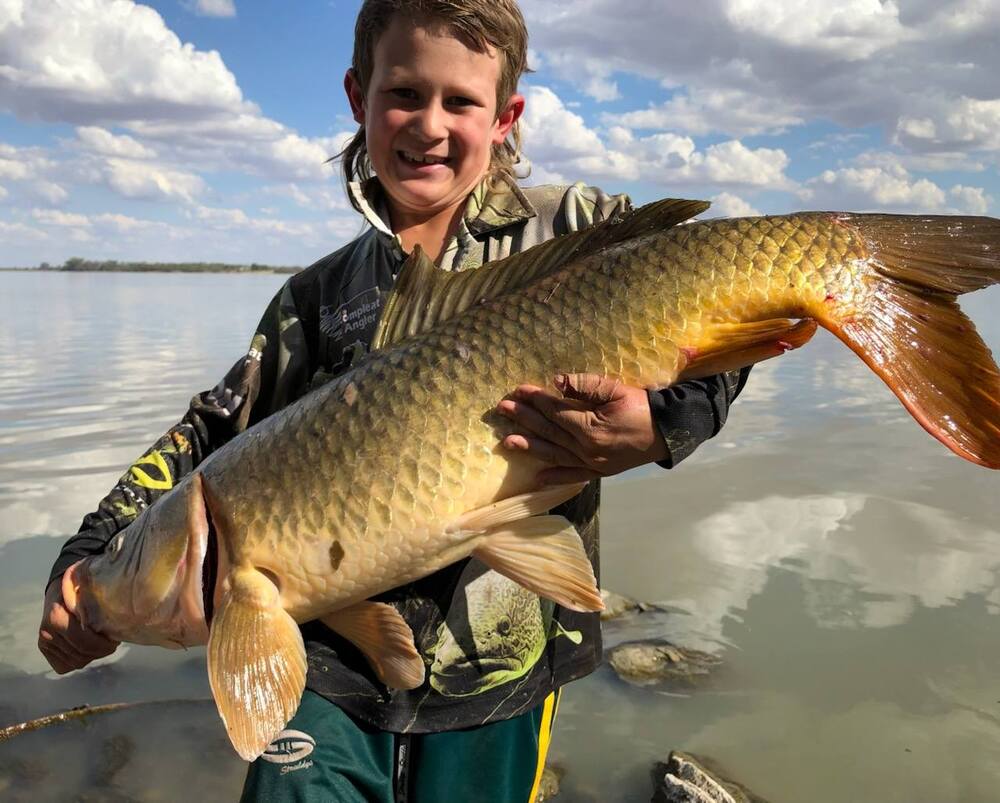 At 83 centimetres, Billy Kelly took the longest carp in the under 14s junior section. IMAGE: Facebook/ Lake Cargelligo JRL Carp-a-thon