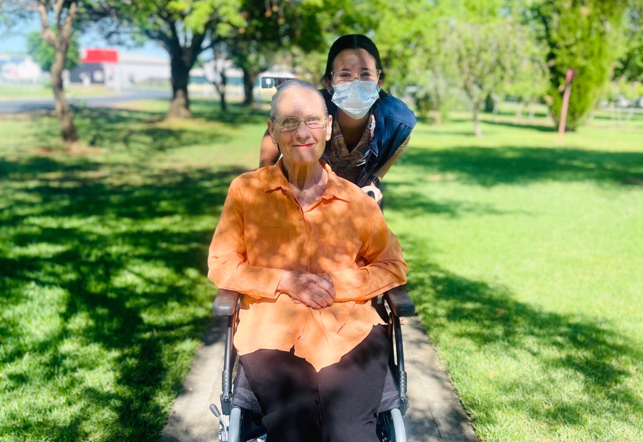 Mariah Delaney with patient Val Pahlow [Image NMPS]