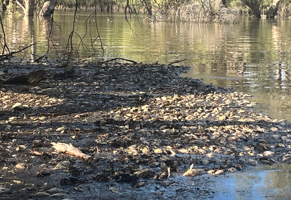 A photo taken on Tuesday of fish kill near junction of the Barwon and Namoi rivers in Walgett. IMAGE: suppliedAuthorities have taken river water sample in Walgett after "thousands" of fish turned up dead in Walgett waterways over the last few days.