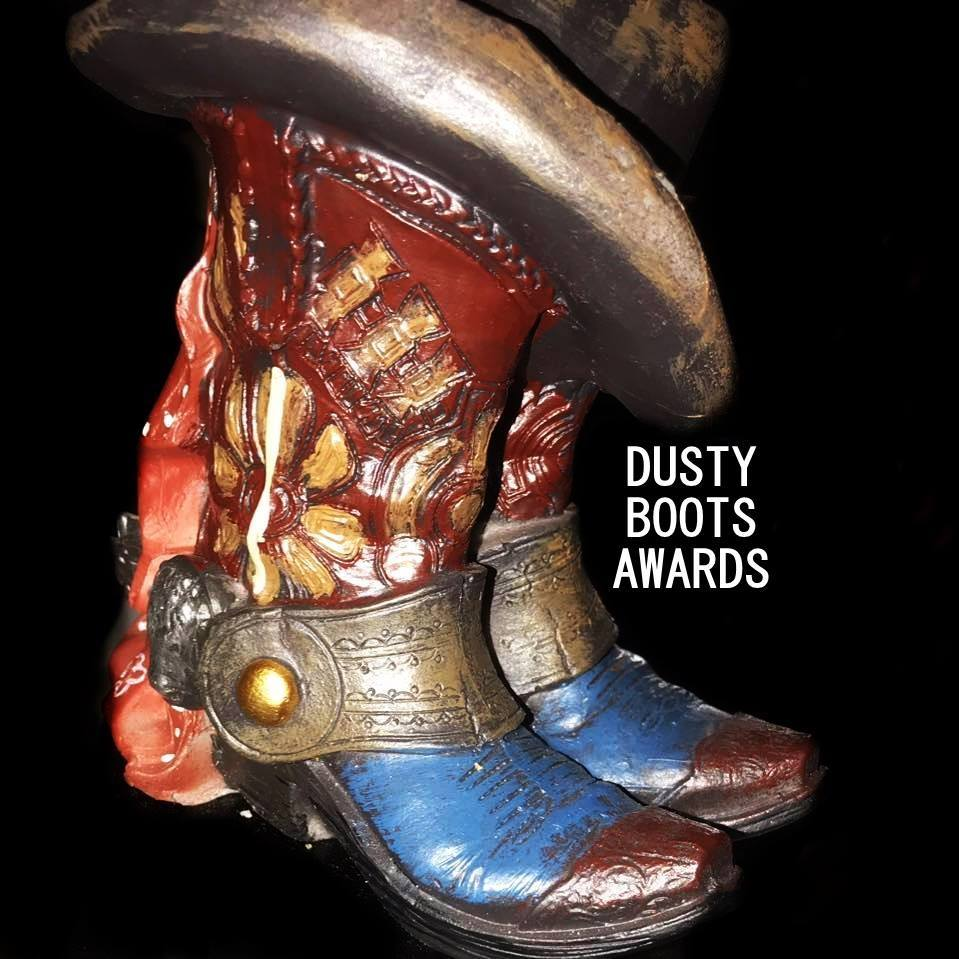 The 'Dusty Boots' are made from old boxes and turned into plaques and he got the idea from fellow popular muso Dixie Jenkins.