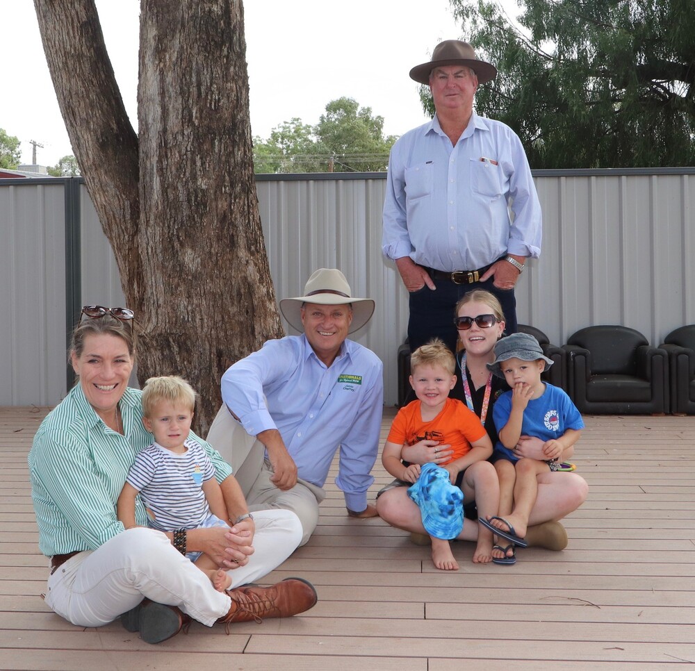 Bogan mayor Glen Neill (right) with Nationals shadow minister Perin Davey and Nationals candidate for Parkes Jamie Chaffey. IMAGE: Jamie Chaffey's campaign