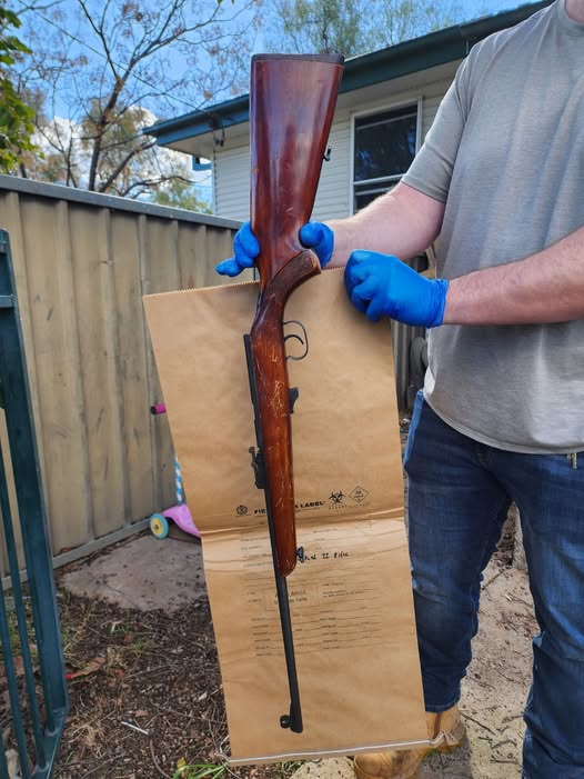 Police forced entry and conducted a search where they located a .22 calibre Baikal rifle inside a bag in a cupboard.