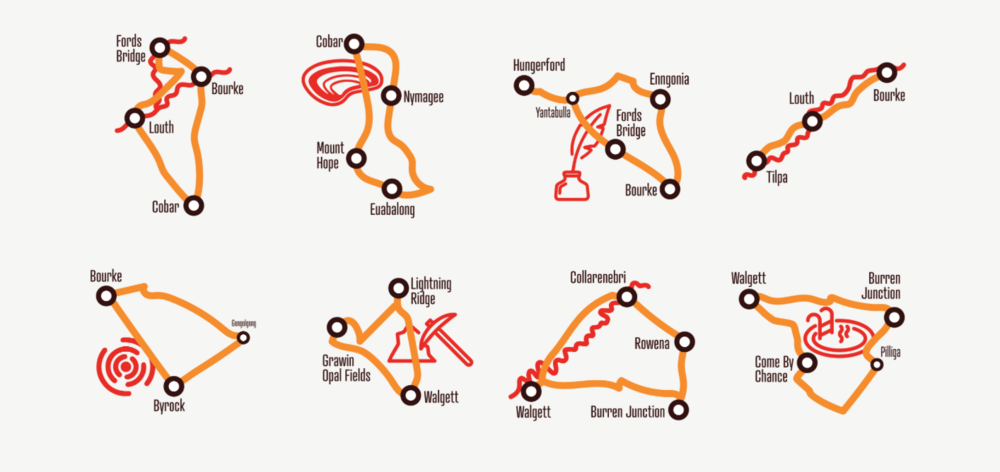 The pub route actually consists of eight different routes through Bourke, Cobar, and Walgett. Some of the routes run into the neighbouring shires, for example into the Pilliga.