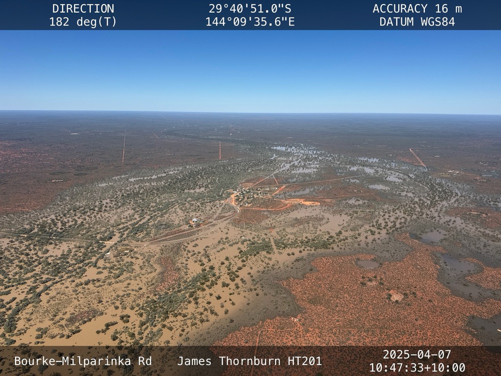 Aerial view of Wanaaring. Photo: NSW SES The Paroo River reached historic heights today, Monday 7 April, after surpassing the previous record of 4.9 metres in the 1990 flood event by 40 centimetres.