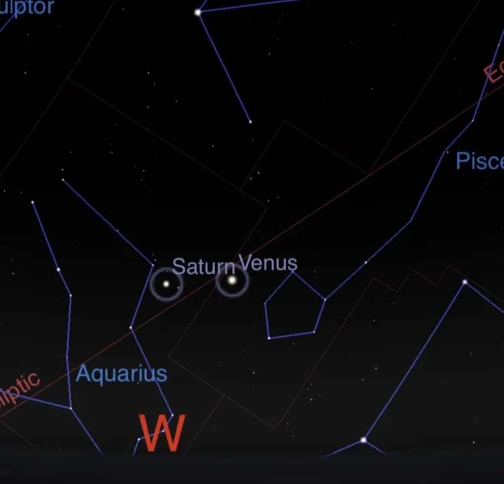 “From January 17 to 18, Venus and Saturn will have a conjunction, coming within just a couple of finger widths distance apart in the sky (about two degrees).