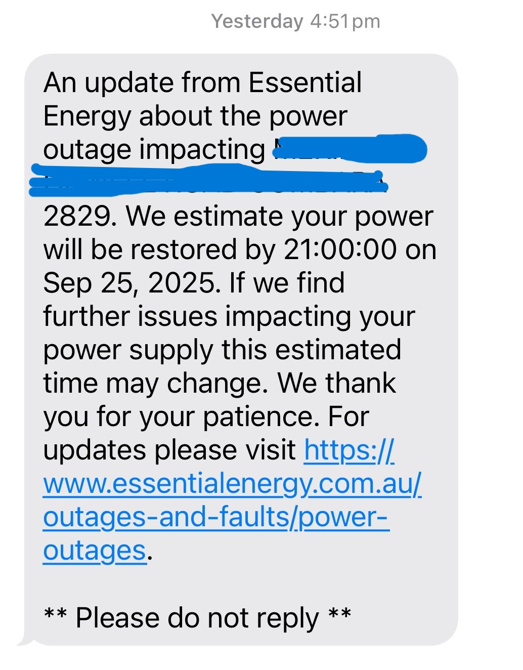 "Essential Energy is aware of an intermittent technical issue that resulted in some customers receiving incorrect SMS outage notifications overnight and this morning," a spokesperson told the Western Plains App.