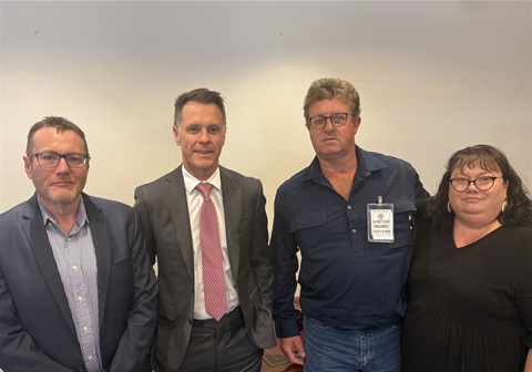 NSW Premier Chris Minns with Walgett Shire General Manager Andrew Brown, mayor Jasen Ramien, and Planning, Environment and Economy director Donna Ausling. [IMAGE: Walgett Shire Council]