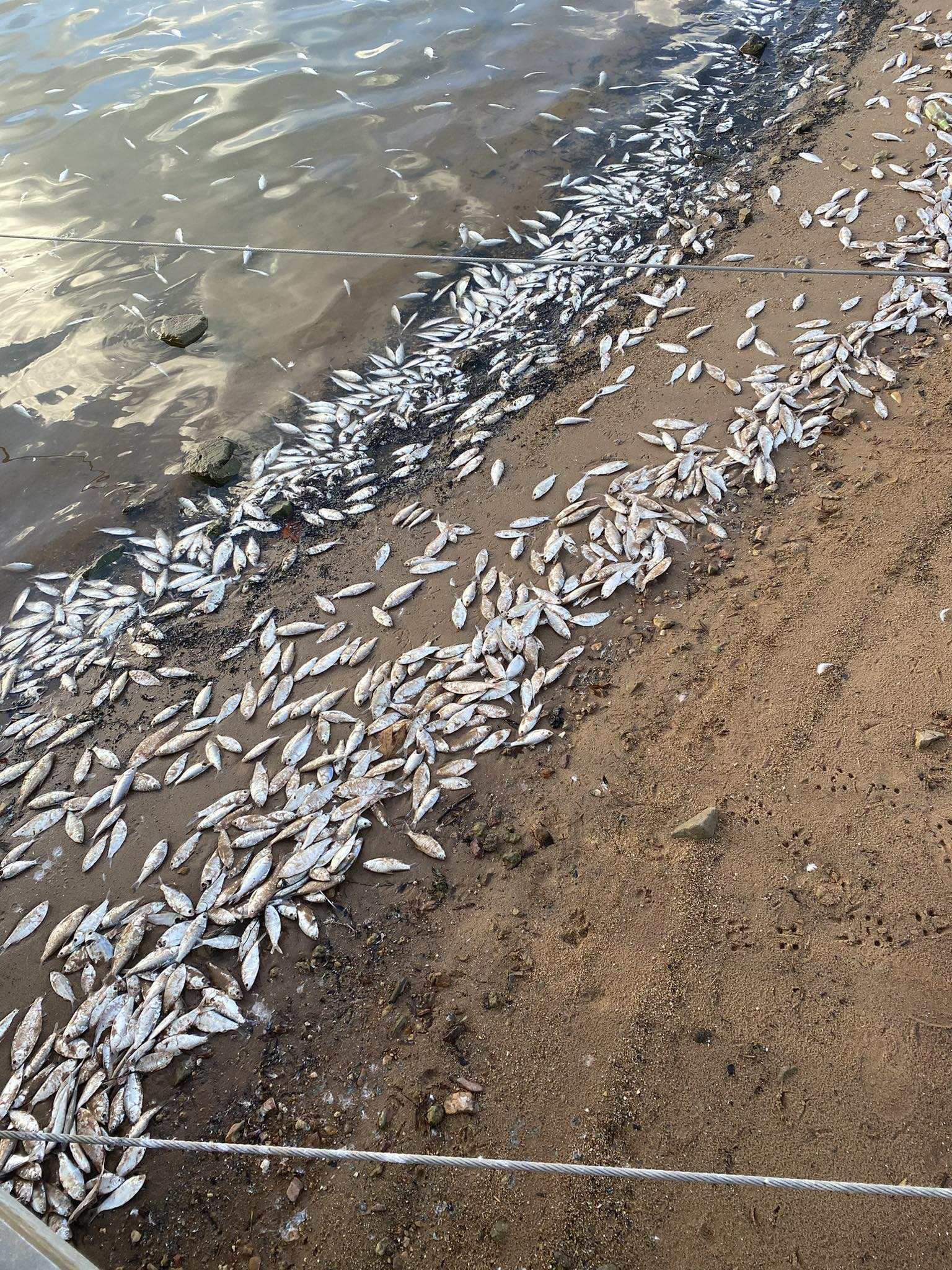 Aquatic ecologist Dr Adam Kerezsy says the native bony herring fish are dead in big numbers, probably thousands.