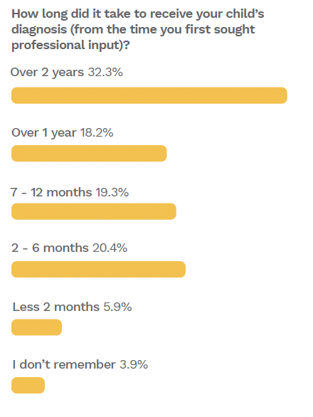 One-third of respondents said they waited over two years to receive a diagnosis for their child.