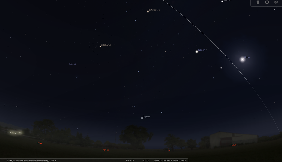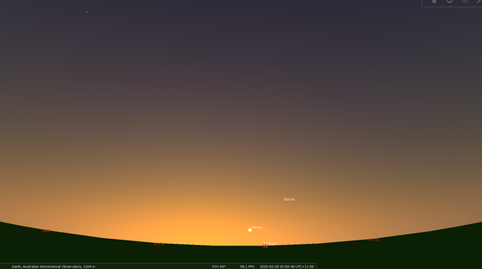 Looking West after Sunset 28th February 2026. [IMAGE: Stellarium]