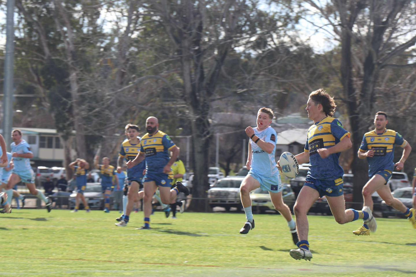 Both sides went at it and it wasn’t until the Unicorn’s captain coach Nick Willoughby very skilfully threaded a grubber through the Gulgong defence from close range, with the ensuing race for the ball being won by his centre Brad Fuller, that the blue and golds looked as if they might win what had become a gripping encounter.