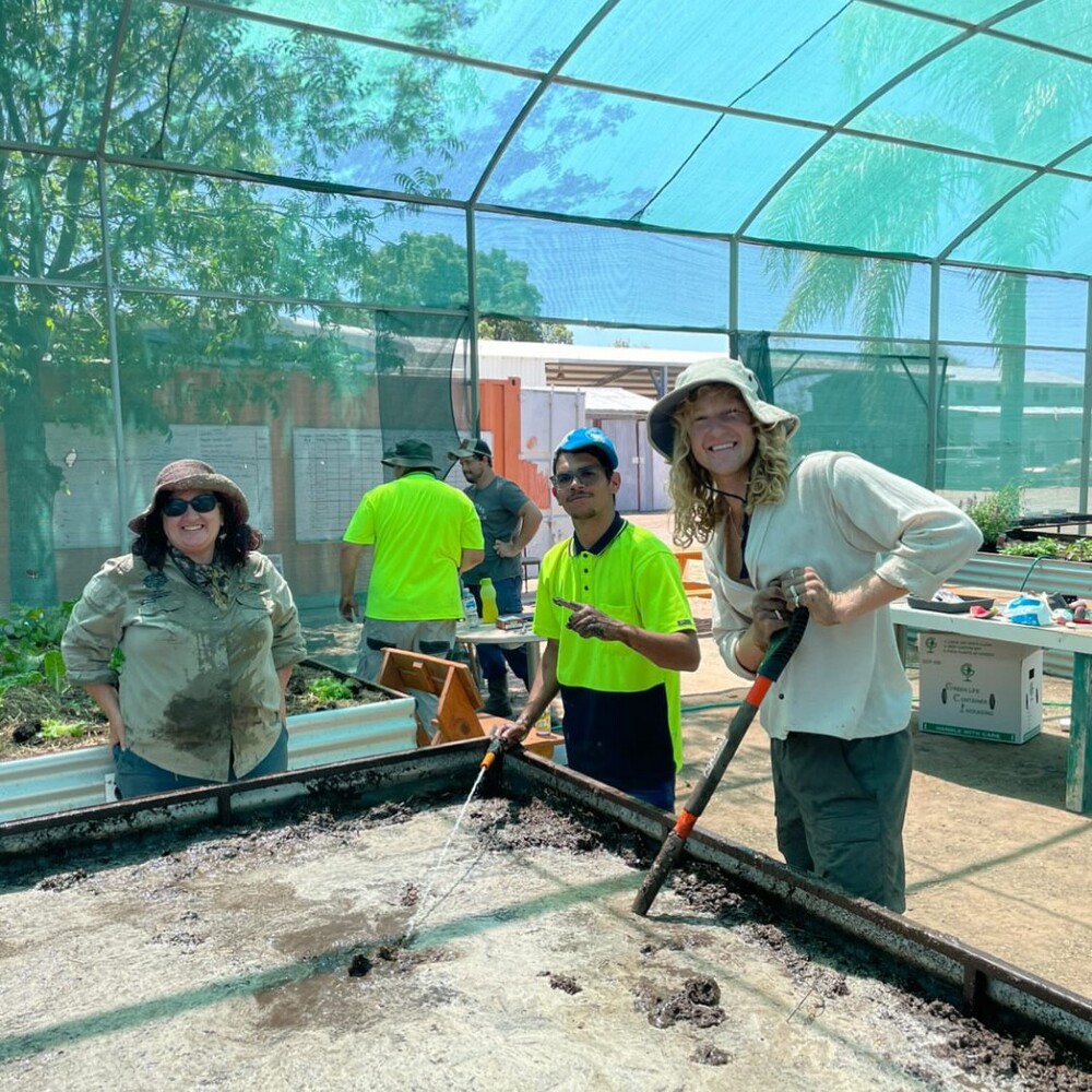 The Botanic Gardens Community Gardening Team, led by Phil Pettit, ran workshops for Bourke community members on setting up DIY wicking and composting.