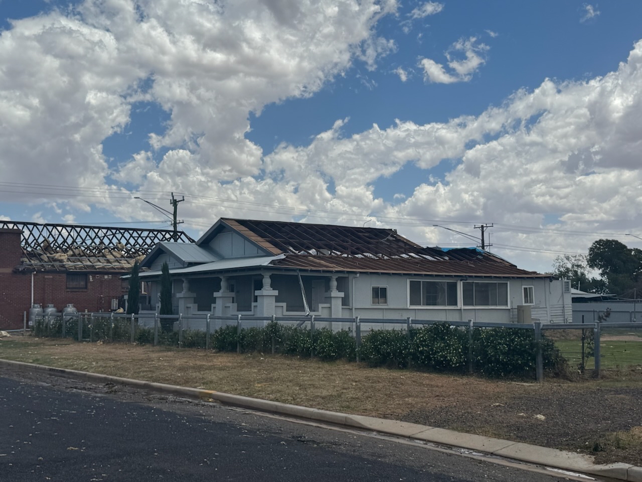Nevertire has been hit particularly hard with sheds, homes and commercial buildings unroofed and seriously damaged.