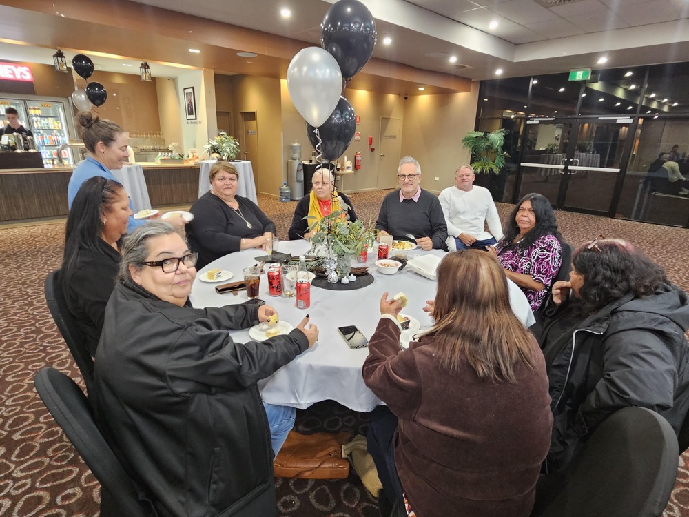 MPRA delegates celebrated the Assembly's 20th birthday in June 2024. Left to right (seated): Michelle Kelly (Menindee CWP delegate), Catherine Cubby (MPSL TSEP staff member), Patricia Bates-Canty (Western NSW Local Health District), Grace Gordon (MPRA Independent Chairperson), Andrew Rose (Aboriginal Affairs NSW), Anthony Knight (Weilmoringle CWP Chairperson), Robin Brown (Weilmoringle CWP Secretary), Carmel King (Menindee CWP Members) and Elaine Ohlsen (Ngiyampaa Elder and Traditional Owner). PHOTO: MPRA