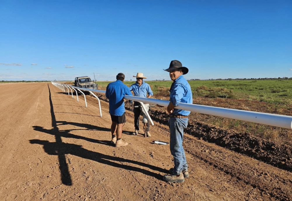 Volunteers getting the new PVC railings in and straight ready for tomorrow's big day. IMAGE: Brewarrina Cup Races facebook