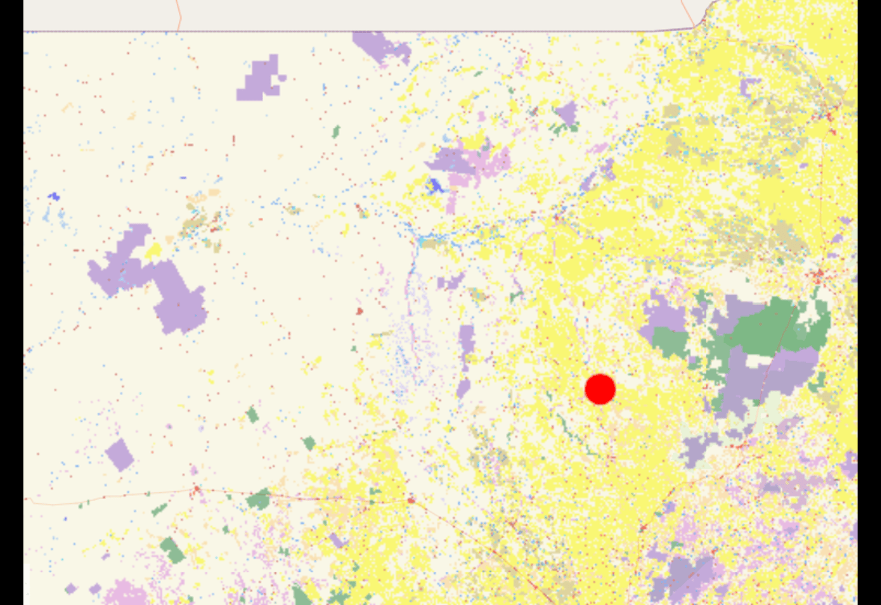 Mapping data around Coonamble (red dot) shows cropping in yellow, while further west the land use is grazing (white)Western NSW, historically one of the state’s highest land-clearing regions, is back in the spotlight after new analysis revealed more than 677,000 hectares of native vegetation was cleared across NSW in the past 13 years.