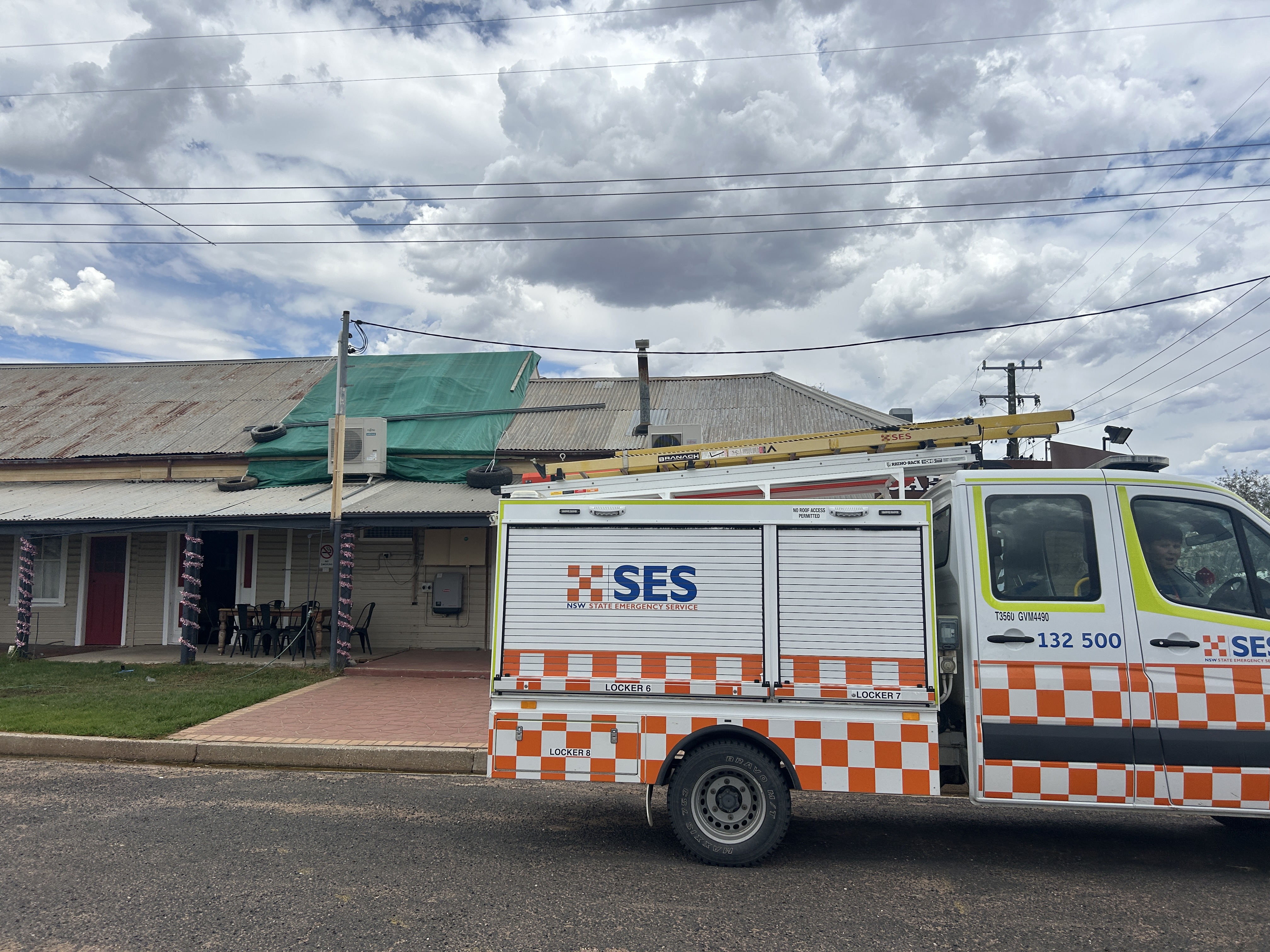 Around 4pm Saturday 3 January a strong whirly wind pushed from the town's northwest, with three roofs reported damaged in the event including the iconic Carinda Hotel.