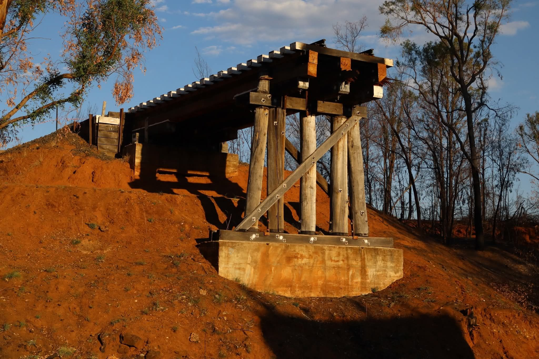A burnt down bridge east of Dubbo has forced freight across the Western Plains replan travel [IMAGE: SOURCED RFS].The resumption of rail freight services between Dubbo and the Port of Newcastle has moved closer with work starting on a replacement rail bridge over Beni Creek on Monday 16 February.